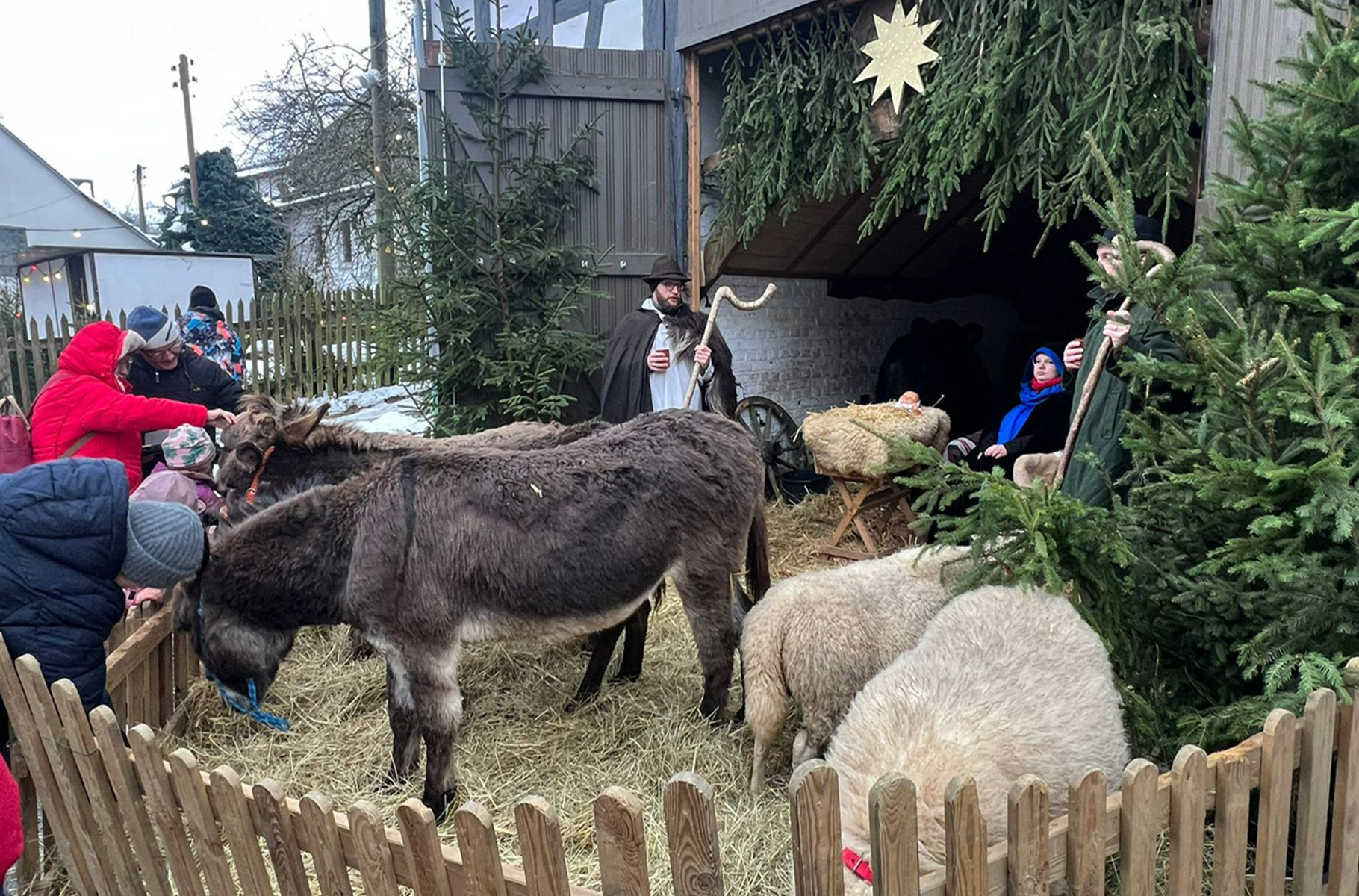 - Lebende Krippe mit Ochs und Esel
